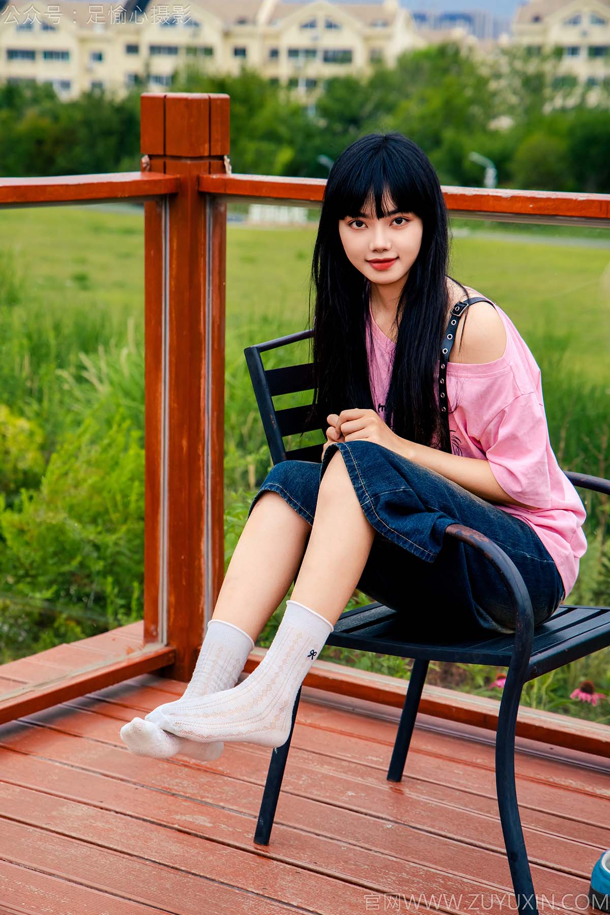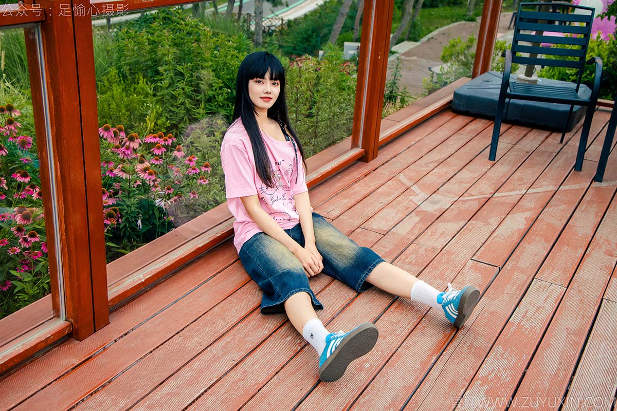 优萌馆 | 魅人堂 » 足愉心 NO.050 阿月(搭配:粉色T恤、牛仔短裤、白棉袜、德训鞋、裸足)