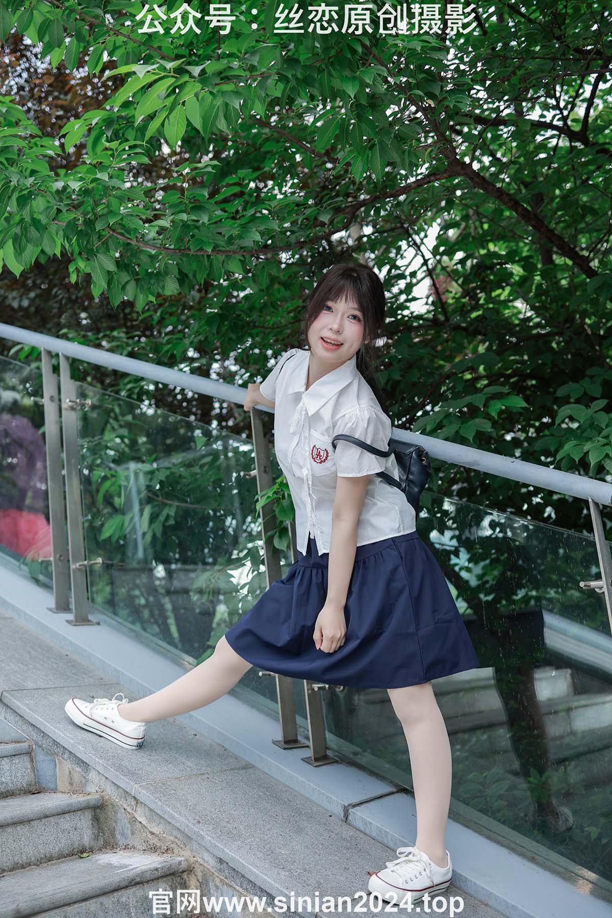 丝恋摄影 NO.016 泡芙-白色衬衫 jk短裙 肉色薄丝 白色帆布鞋