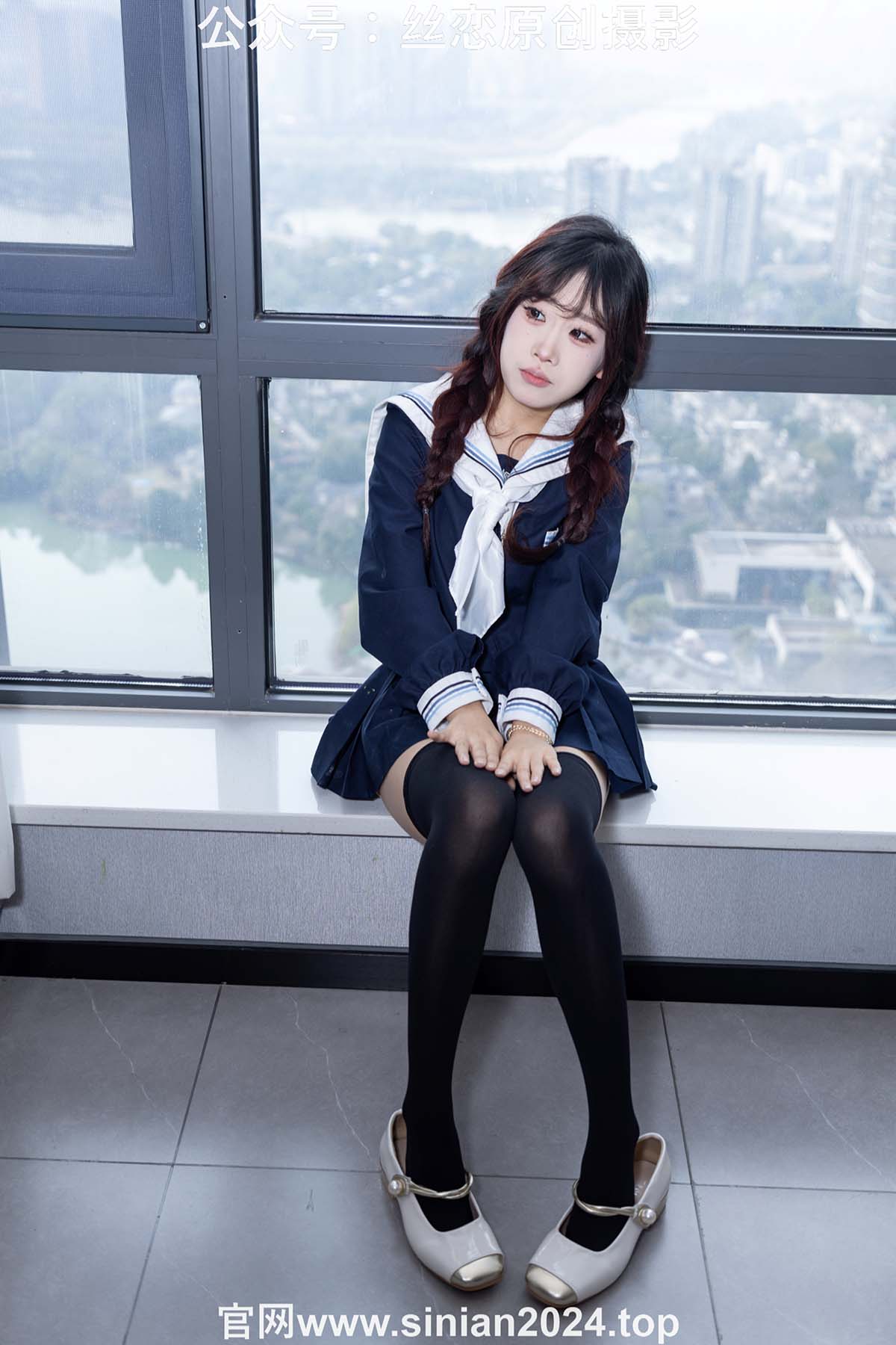 丝恋摄影 NO.017 小梦-学院风 jk连衣裙 黑色丝袜 白色小皮鞋